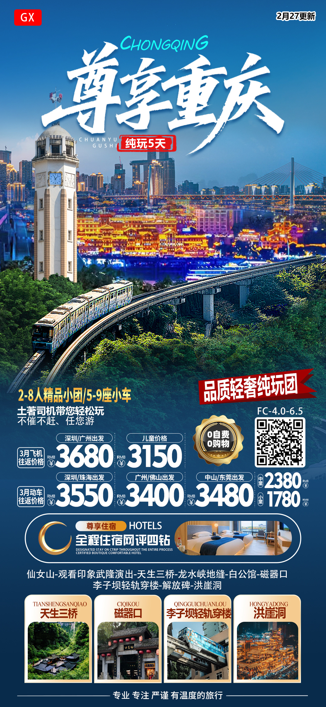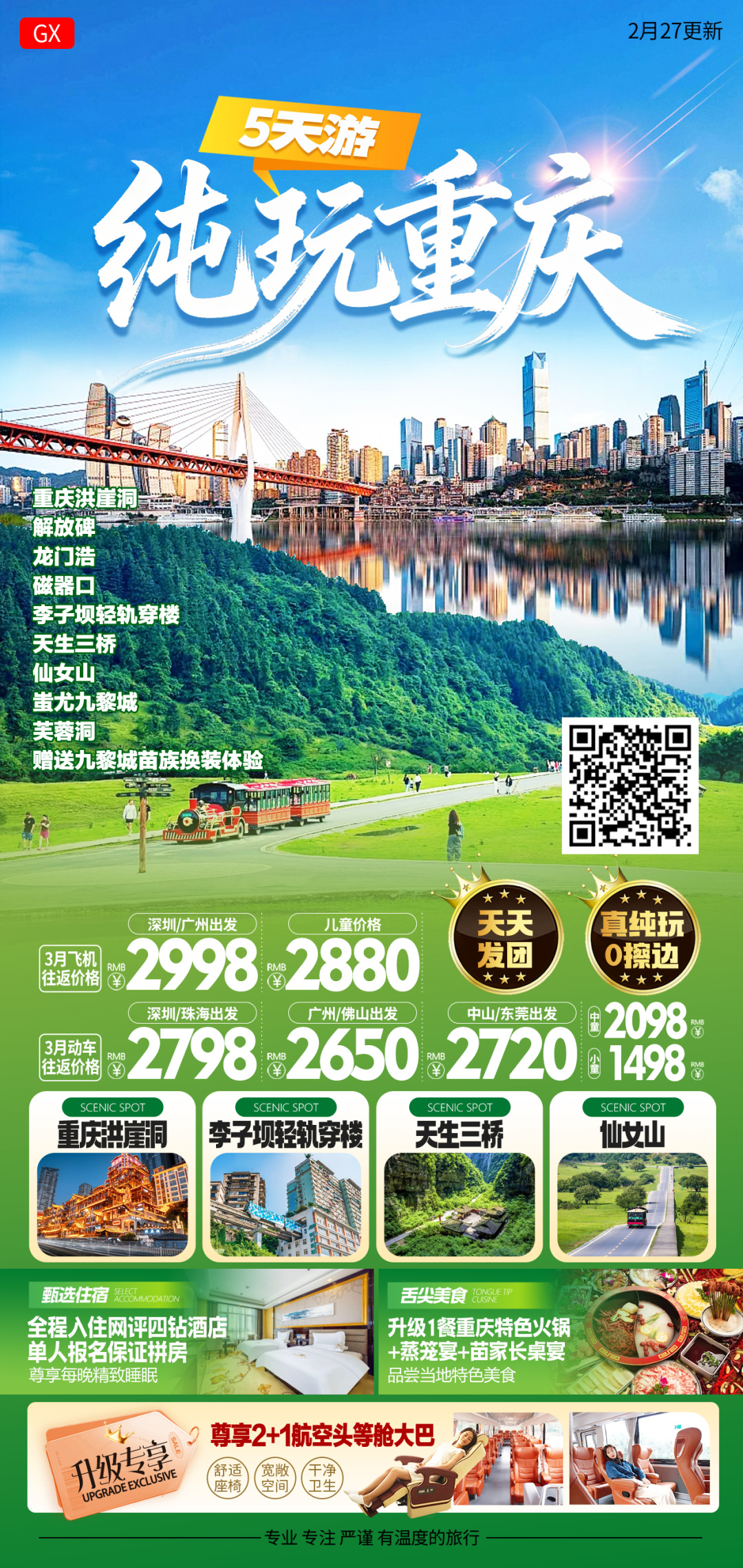 【纯玩重庆5天】天天发团 一人成行