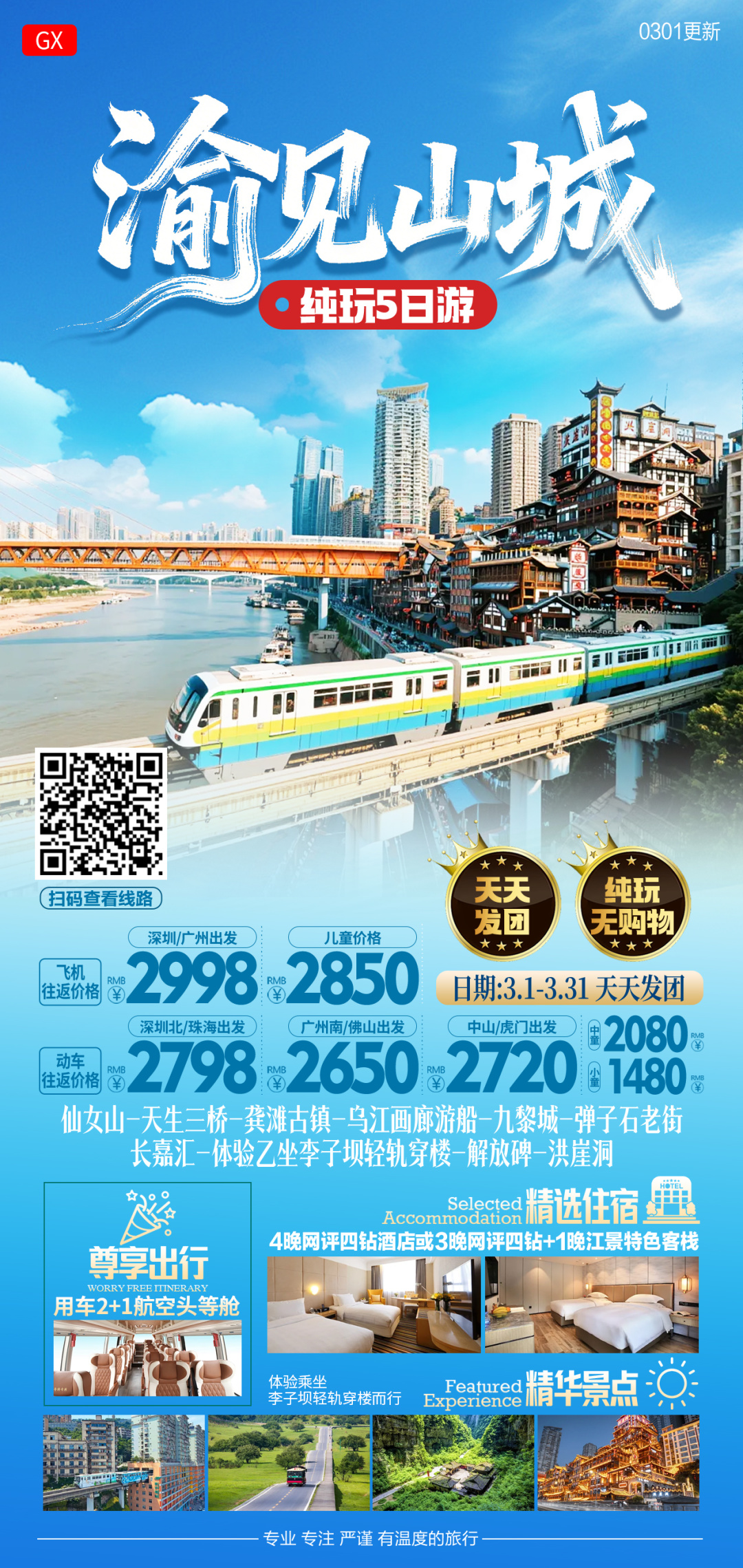 【渝见山城5天】天天发团 一人成行