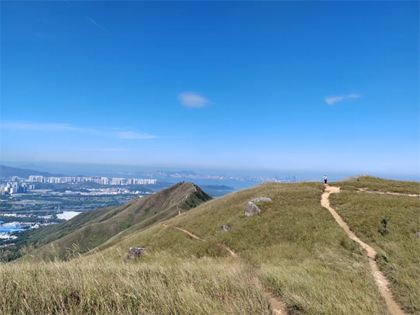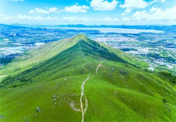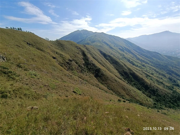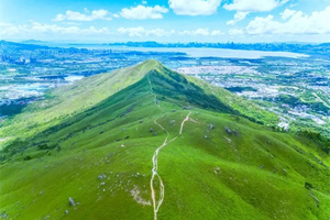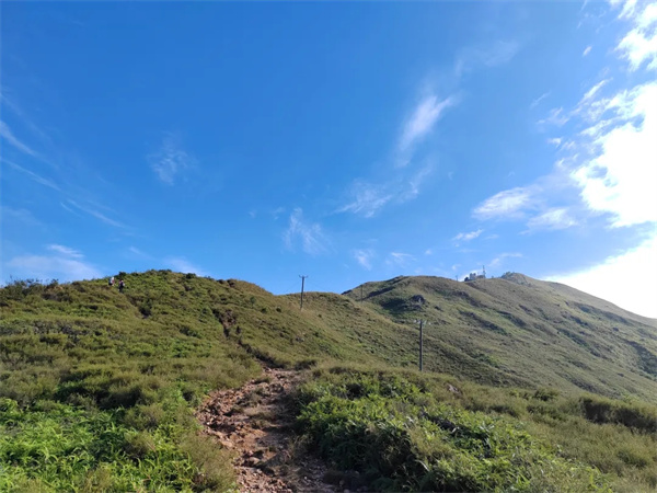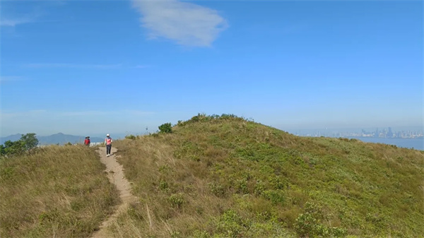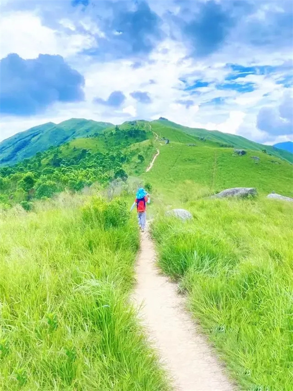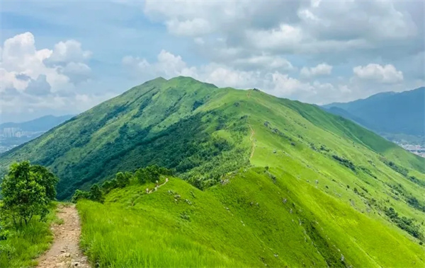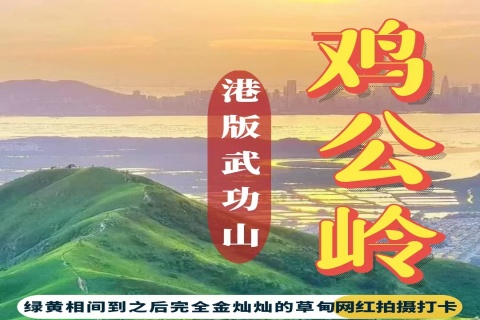 鸡公岭山貌极为突出,有“港版小武功山,港版富士山”之称,山脊向四方伸延,气势非凡,其山峦的起伏于光线下极富层次,引人注目,山坡平坦,视野开阔,沿途草坪如地毯般铺盖山岭。