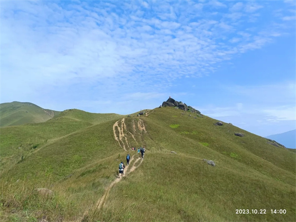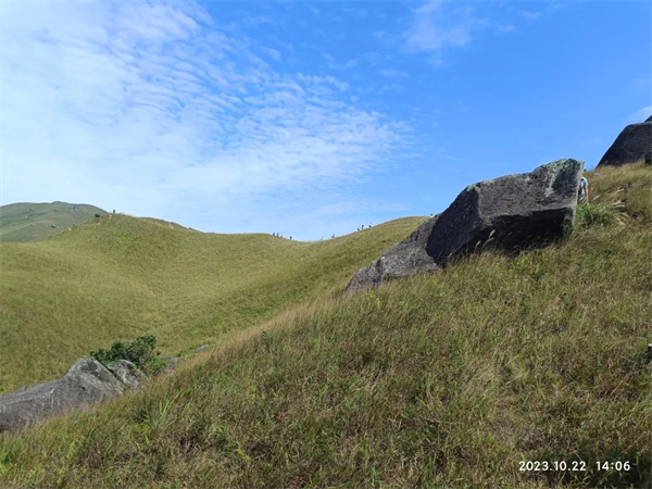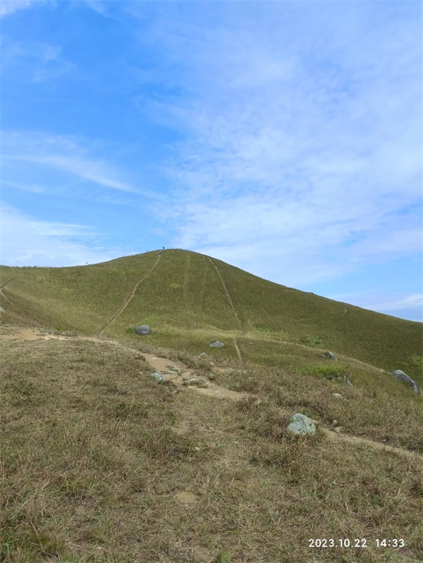 有谁会不爱这样的鸡公岭呢,蓝天,白云,绿草到绿黄草再到金黄草,简直坠入了宫崎骏的秋冬,年度最治愈的时刻,起伏连绵的草甸上,云朵染上秋冬风的清甜,正欢快地变幻形状,秋冬,在鸡公岭山顶草甸吹着微凉的风,看云肆意欢腾。