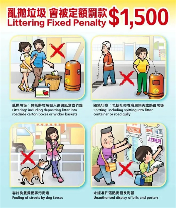 三 乱抛垃圾,吐痰罚款1500港元,最高5000港元