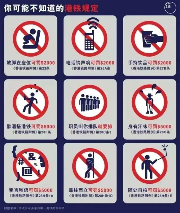 一 公共交通上(地铁,公交,轮渡,飞机)吃东西,最高罚款10000港元