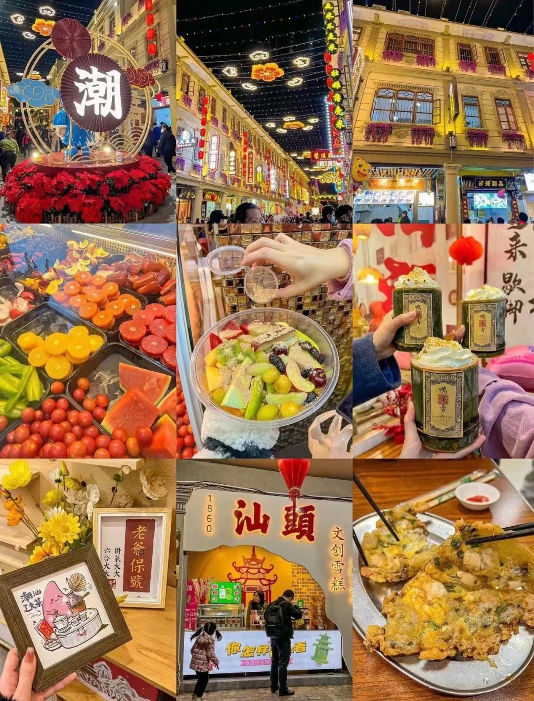 美食推荐:腐乳鸡翅、牛杂、咸水粿、杏仁茶、生腌、牛肉丸、粿条面肠粉、笋粿、麦粿、蚵仔煎、牛肉火锅、卤鹅肉、春卷、海石花、绿豆饼、菜头粿、糕粿、甘草水果、糖葱薄饼、鸭母捻...等等