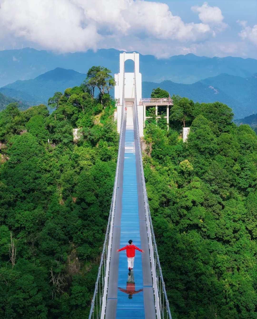 除了高空缆车,还有更刺激的玻璃索桥等着你体验。横穿两山的玻璃索桥全长330米、高差近200米,好像一条盘踞在山间的巨龙一般,气势逼人,惊险刺激。走在玻璃索桥上看三百山,山间云雾随风涌起又飘散,时光也都慢了下来。