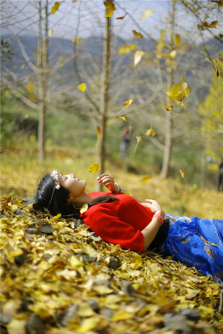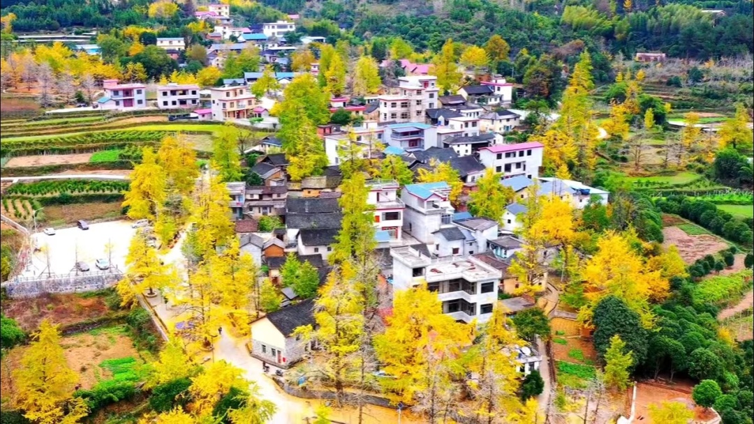 深秋时节,整个村子就成了金色的海洋,微风轻拂,落叶缤纷,片片黄叶随风飞舞,铺得满地金黄,仿如一个迷人的金色童话世界,在秋日的暖阳下让人流连忘返。村头,有村民带这自产的土特产在摆摊。村中,孩子们在银杏林中嬉戏,青砖灰瓦的房顶洒落着厚厚的黄金叶,与树底下的篱笆、近处的小溪、远处的稻田一起,构成一幅悠然恬静的田园风光画。