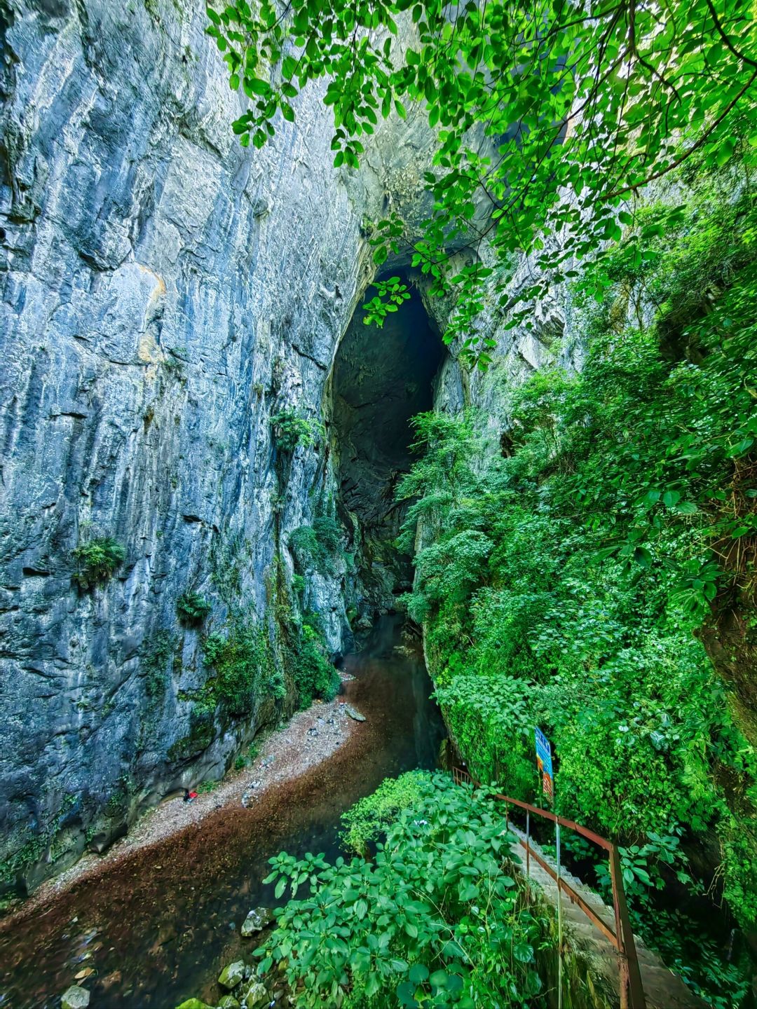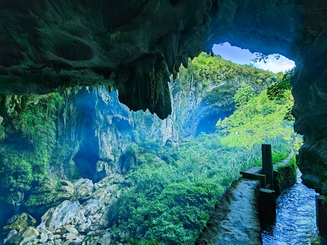 这是一个连桂林本地人看到都连连发出“卧槽”感叹的神秘天然岩洞!密林深处通幽径,拉开树帘便是大自然鬼斧神功让人震撼的作品。它是一个可内部穿越的岩洞伴着深蓝见底的水流,一路流经形成一个小平滩。