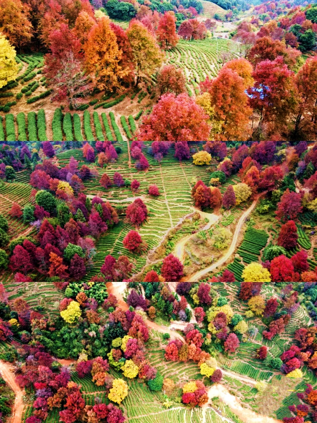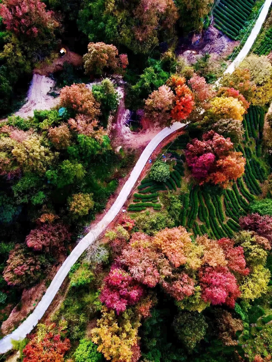 这里枫林和茶园相映成趣,像极了云南的“无量山”。这里漫山遍野,红的层次分明,红的令人心醉....
