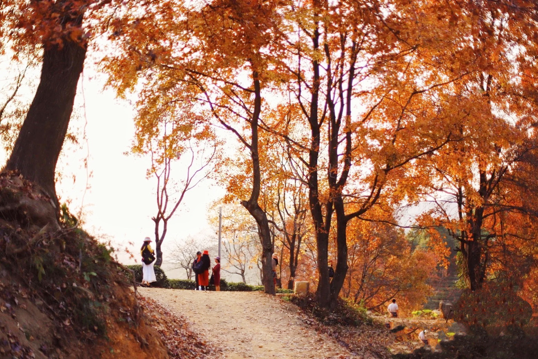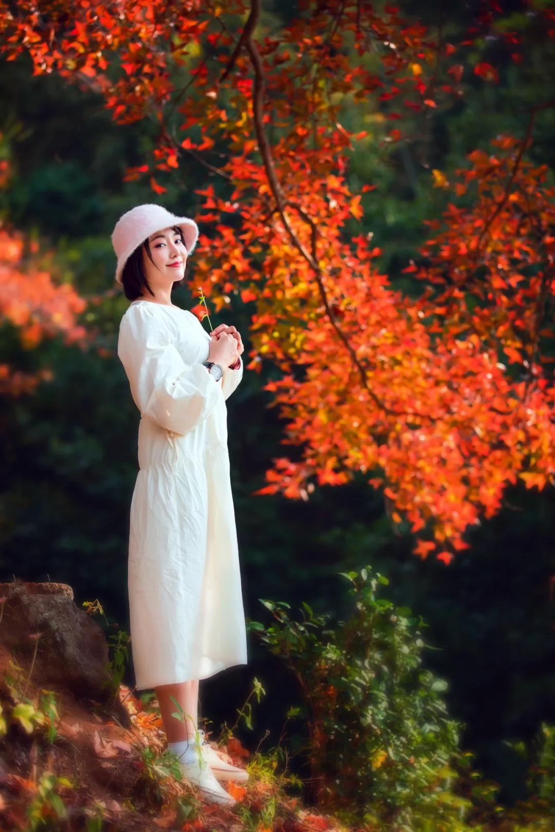 田野山涧,嬉戏的人儿会被枫叶亲吻,