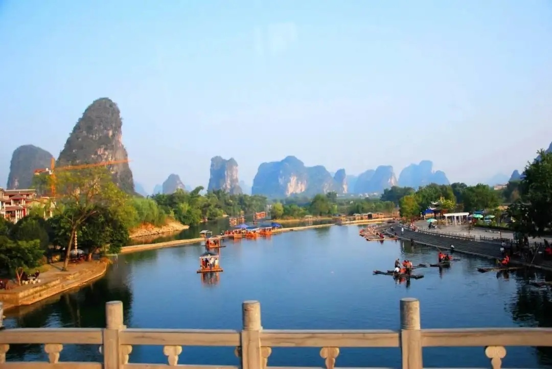 8:00前往【多人竹筏】(门票已含)人称“小漓江”,不是漓江胜似漓江。在其上泛舟漂流,赏两岸桂林山色,才不虚此行。两岸山峦百态千姿,河畔翠竹叠嶂,蕉临四季常青,沿岸地稻田一年四季颜色不断变化,田野里一片生机勃勃,诗情画意尽显其中。