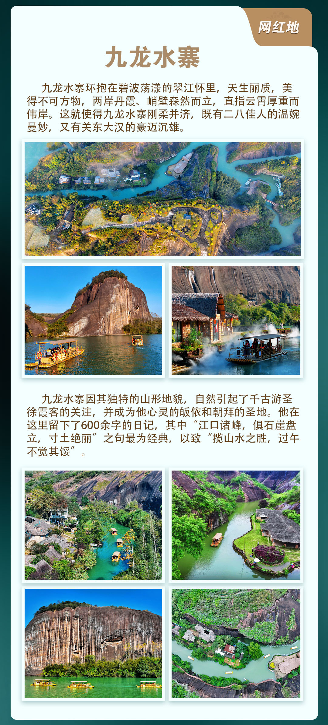 13:00到达开始徒步,一个绝对值得一去再去的好地方,经典的丹霞地貌,山水犬牙交错,奇形怪状,不是鬼斧神工,而是上天的刻意而为之!惊而不险的悬崖陡壁,绝对惊险刺激!山很青,水很秀!很原始,很安逸!整个风景区集山、水、林、洞、佛为一体,聚雄、奇、险、巧为一身。明代大旅行家徐霞客曾赞叹“江口诸峰,俱石崖盘立,无一山不奇,无寸土不丽”,并雕刻“寸土佳丽”留存至今。