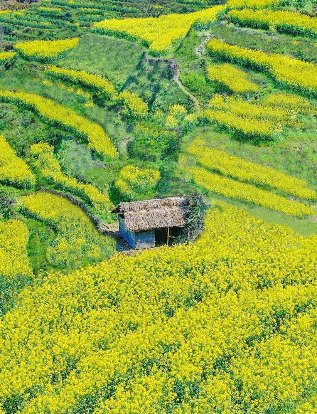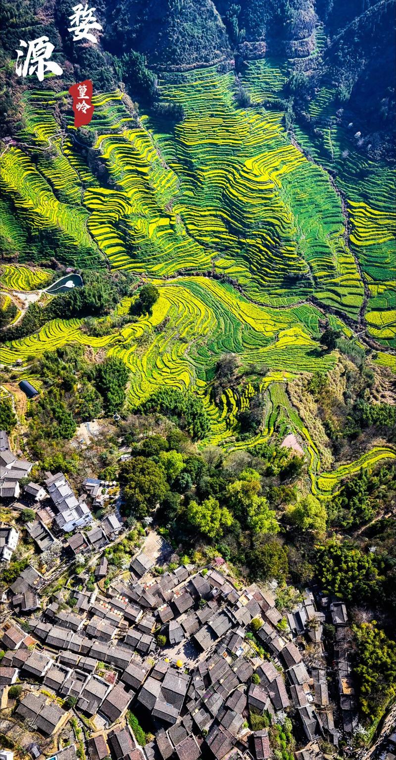 篁岭油菜花在2026年3月初开始初开,最佳观赏期从3月下旬持续至4月中旬