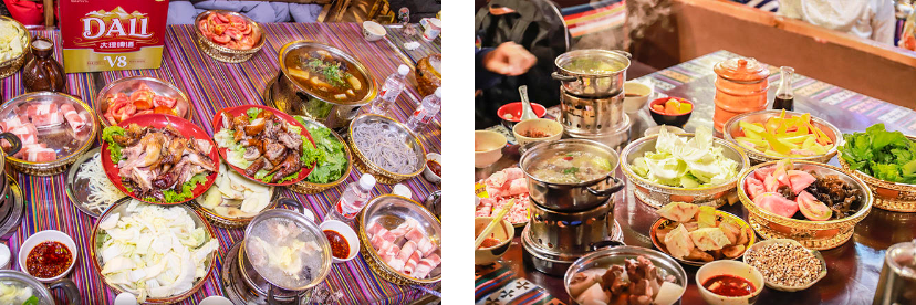 3、【黑山羊火锅】是肉食爱好者的福音。黑山羊生长在丽江的山区,它们以天然的草料为食,肉质鲜嫩紧实,毫无膻味;