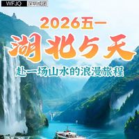 2026五一 湖北5日游 赴一场山水的浪漫旅程 【行程亮点】  粮食巷/户部巷--打卡武汉最地道/最美味的小吃街。 武汉夜景--观独一无二的一楼一桥一江奇观。 武汉...